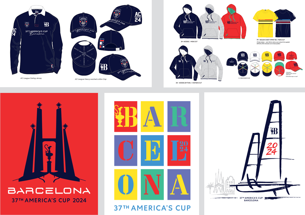 For America's Cup 2024 client Sportfolio needed a basic branded merchandise range, as well as tourist-based TShirt print designs, to capture the tourist market in Barcelona pre-Cup. The product was needed for a pop-up store opening on the Barcelona waterfront in June 2023.